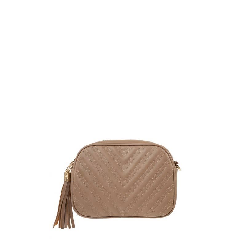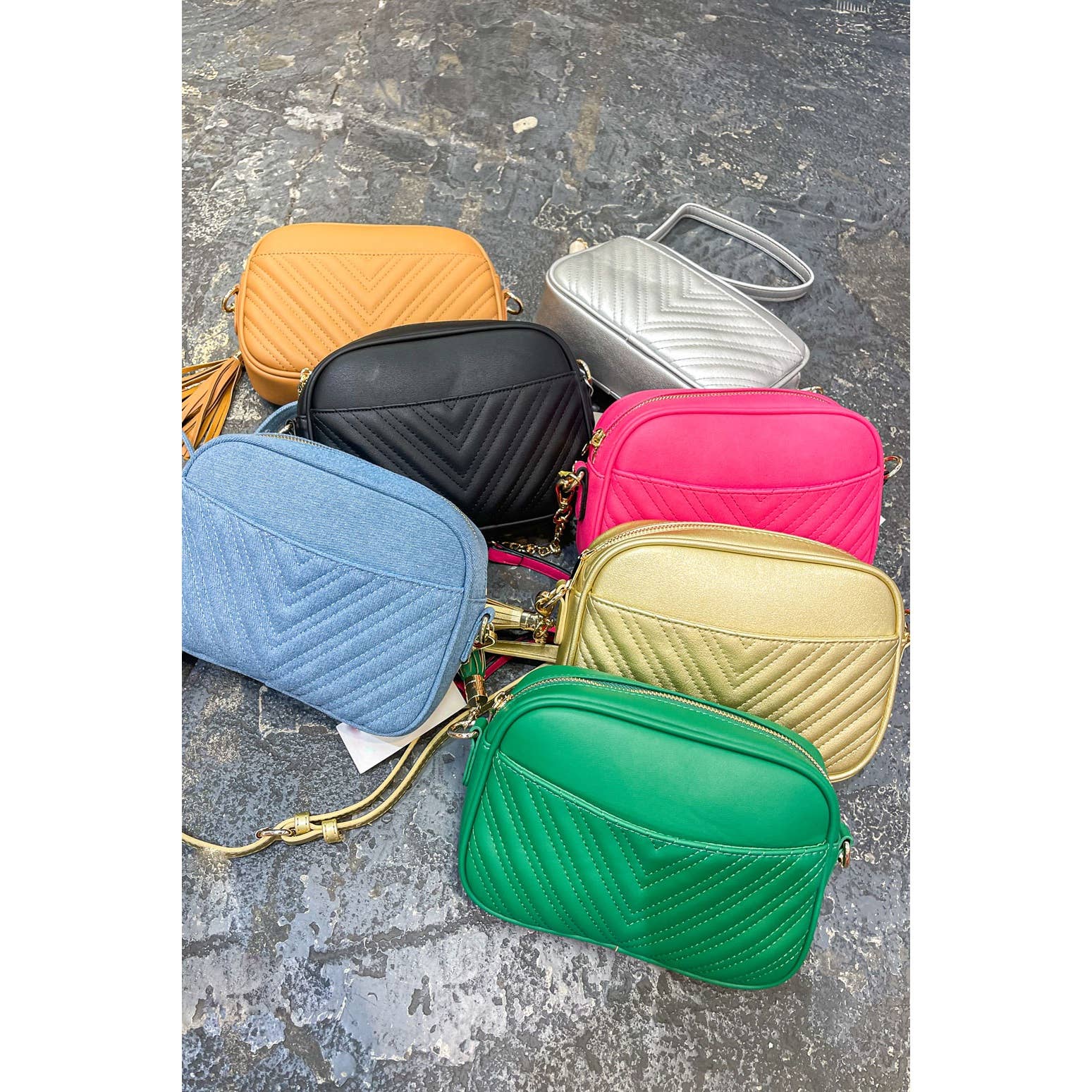 BEBLESSED - CLASSIC V QUILTED RECTANGULAR CROSSBODY BAG WITH TASSEL: ONE SIZE / SILVER
